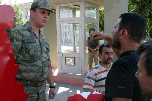 Polisin aileye durumu anlatması üzerine komutanın dışarı gelmesi yönünde tartışma yaşandı. Yetkili komutan nizamiye önüne gelmeyince aile de içeri girmedi.